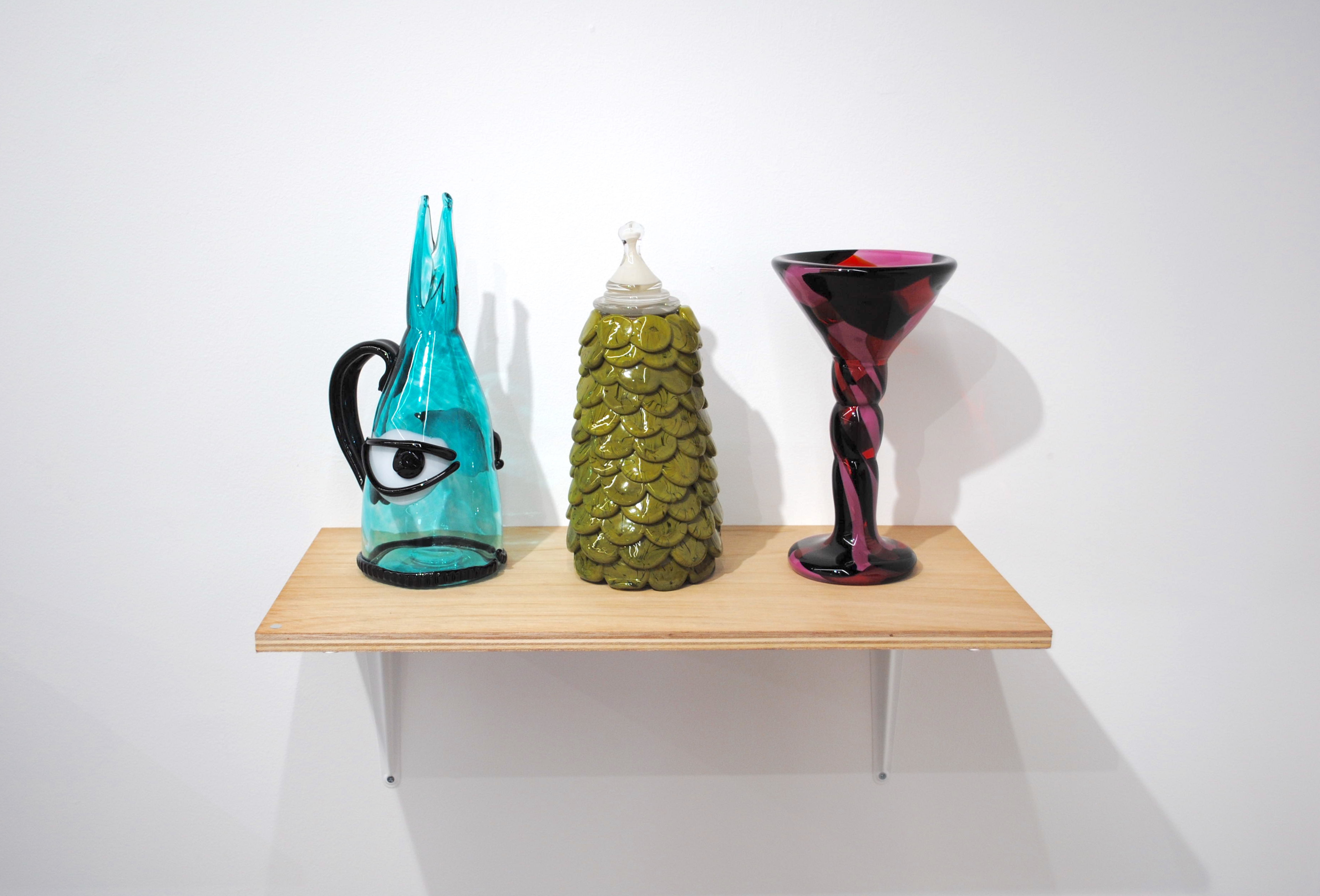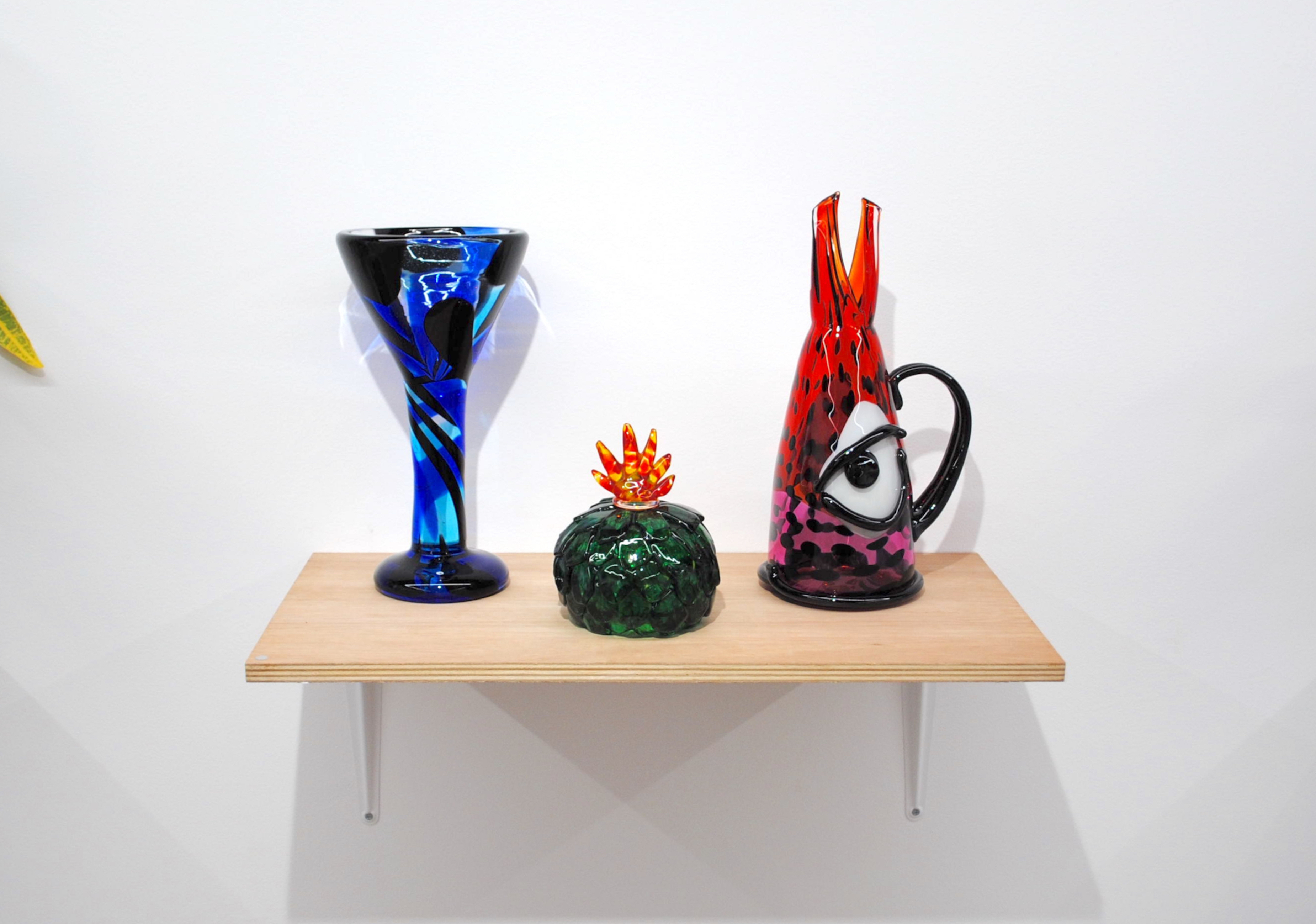 Compositions of the objects in the exhibition were attempts at kamikyoku (神曲), which is Japanese slang for "incredible song." In English, the slang equivalent would be to call a good song a “banger.” For the art of glassblowing, technical practice often meets harsh execution. But every now and then, an object is made that exceeds expectations. Some of the glass works could be melodies by themselves; with others, it is the collected variety of form and color that could evoke something harmonious.